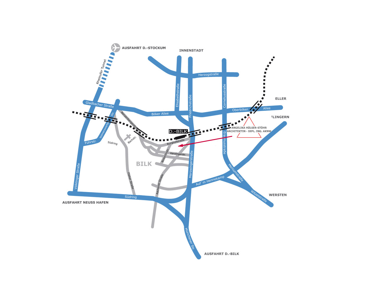 Immer geradeaus über den Kennedydamm bis zur Rheinuferstraße
